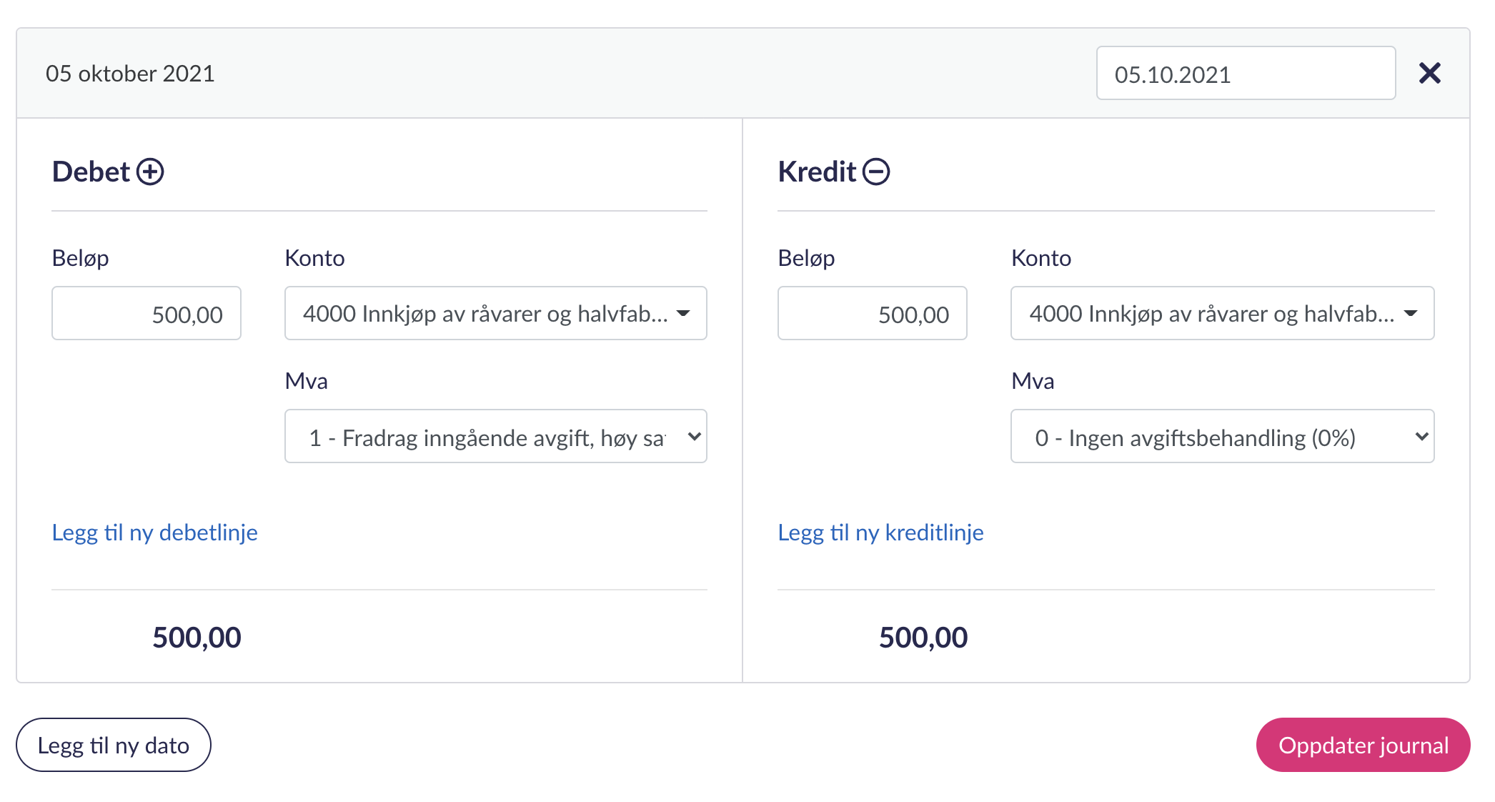 Journalen vil da se slik ut: