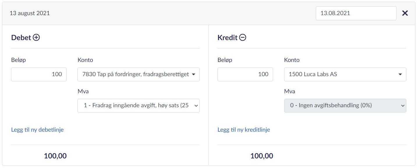 Dette gjør du ved å gå til “Salg” > “Kunder” > klikk på (…)-knappen. Her kan du koble det manuelle bilaget som du akkurat har ført mot kundefakturaen. Du huker av for både det manuelle bilaget og for kundefakturaen, og så klikker du på knappen “Lukk poster” som kommer opp.