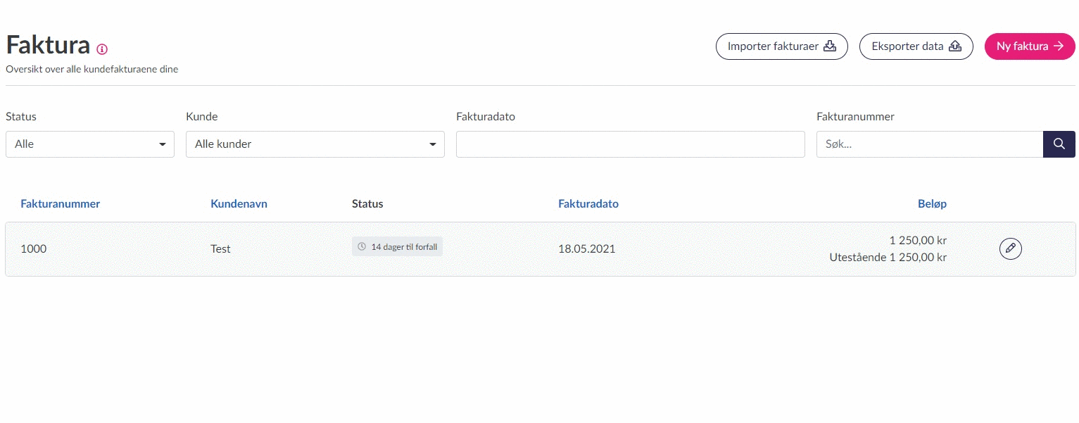 Det er raskt og enkelt å opprette en kreditnota på en kundefaktura. Merk at en kreditnota krediterer hele fakturaen og hele fakturabeløpet.