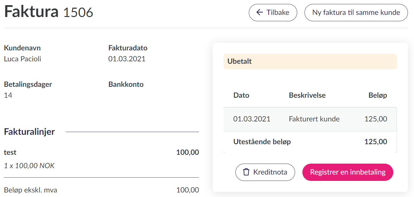 Hvis kunden delbetaler fakturaen kan du klikke på “Betalt beløpet delvis” for å redigere beløpet.