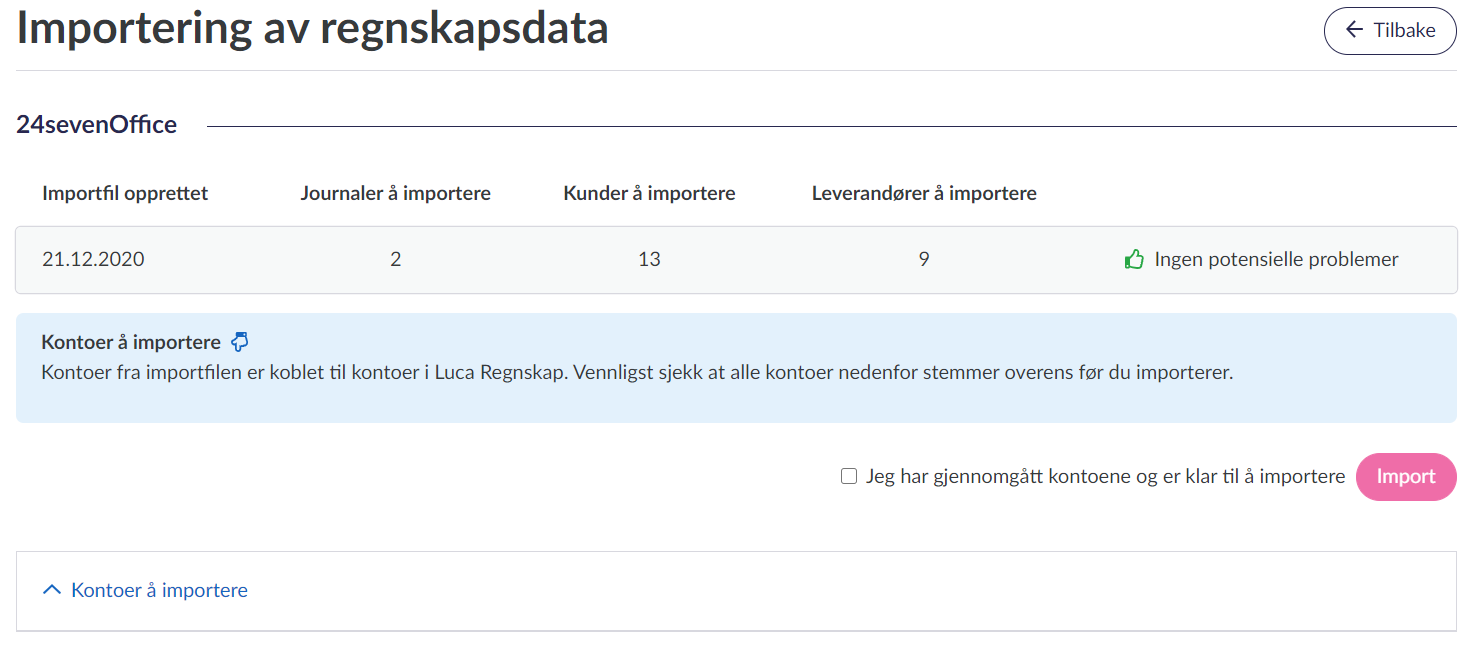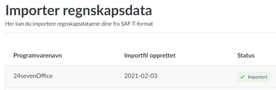 - Nå importeres regnskapet ditt! Dette kan ta litt tid, avhengig av hvor mange føringer som skal importeres.