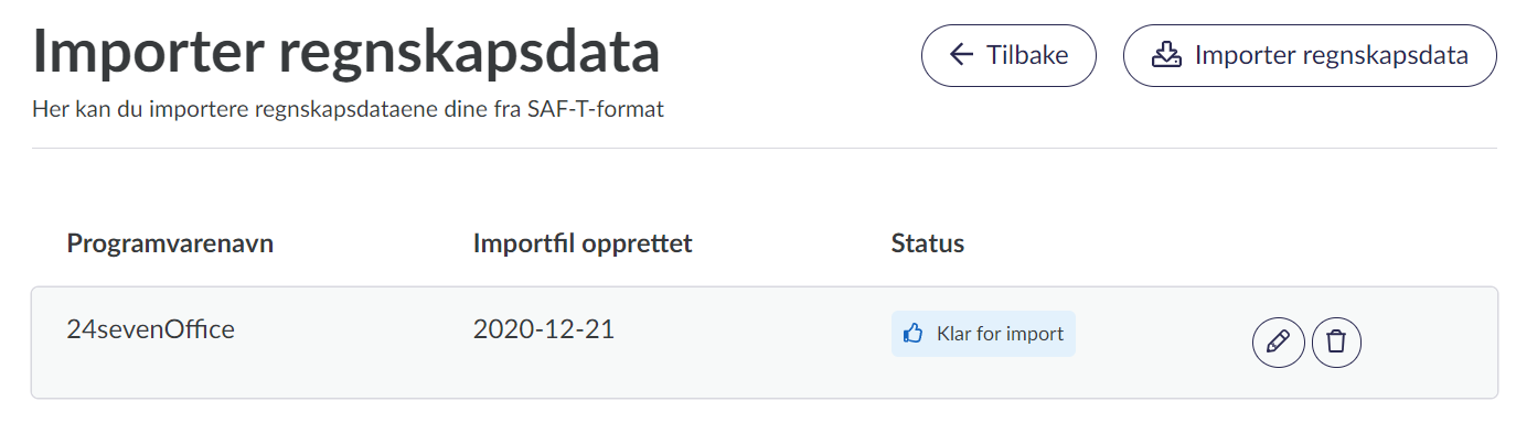 - Klikk på knappen Importer regnskapsdata i SAF-T formatet