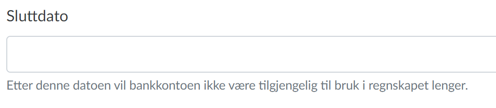 Når du legger inn en sluttdato på bankkontoen, vil bankkontoen ikke lenger kunne velges i regnskapet etter sluttdatoen. Den vil også heller ikke måtte avstemmes fra måneden etter at sluttdatoen er lagt inn.
