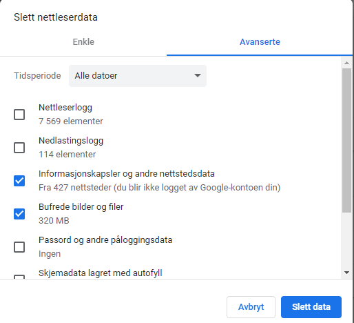 Hvis du opplever et problem med for eksempel å laste inn regnskapssystemet i nettleseren din, kan en tømming av bufferen og informasjonskapselen løse problemet. Nedenfor finner du informasjon om hvordan du tømmer denne i de ulike nettleserne.